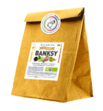 La confezione in cartoncino biodegradabile, contiene 5 filtri monodose del blend BANKSY. Ogni filtro è ARTIGIANALE, BIOLOGICO e MADE IN ITALY, ciascuno con 2g di tè di alta qualità taglio tisana. Non è provvisto né di filo né di pendulino in carta per non aggiungere altri elementi potenzialmente inquinanti sia nell’infuso che nella filiera di produzione. La piccola azienda agricola piemontese con la quale formuliamo gli aromi per ogni titolo, li confeziona assieme ai tè, applica le più rigorose politiche di rispetto e tutela sia ambientali che lavorative. La certificazione biologica è invece affidata a ICEA.