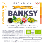 Per Banksy, uno dei più dissacranti artisti contemporanei - nato in Inghilterra - abbiamo tolto il tè nero della più diffusa e tradizionale versione inglese di tè: l’Earl Grey, sostituendolo con il tè blu Oolong. Aggiungendo il Bergamotto diventa così l’Earl “Blue”. Una rivisitazione che rispecchia il suo modo di operare; semplice e non convenzionale. L'inserimento della Rosa canina è un riferimento cromatico al rosso così da richiamare, assieme al blu del tè, i due colori della union jack. Infine, essendo Banksy uno street artist, non poteva mancare il Tarassaco (dente di leone), pianta tra le più comuni che cresce tra i marciapiedi delle strade.
