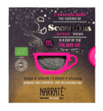 Intelligente, determinato, appassionato, ottiene sempre ciò che vuole. Lo Scorpione è un segno intenso con un’energia emotiva unica in tutto lo zodiaco. È un segno tremendamente potente sia in positivo che in negativo. Possiede tenacia e forza di volontà uniche. Tra tutti i segni dello zodiaco è il più incline a manifestare genialità, purché tenga a bada il proprio lato oscuro. Se uno Scorpione riesce a usare la sua smisurata energia in modo costruttivo, può rivelarsi un grande vantaggio per la società e potrebbe diventare un eccellente leader. Lo Scorpione è anche il simbolo del sesso per il quale l’atto d’amore è la ricerca di un’estasi spirituale. Per questo abbiamo optato per un inedito blend, stimolante e afrodisiaco. Un’eccitante miscela a base di tè nero Darjeeling a cui abbiamo aggiunto la forza piccante dello Zenzero, la malizia di Fragole e Cannella per sfociare in un audace sentore di Pepe rosa. Infine la Malva, una pianta che sottolinea l’appartenenza del segno all’elemento Acqua. Tutti ingredienti selezionati per riproporre ed esaltare le caratteristiche dello Scorpione, restituendone la squisita essenza al palato.