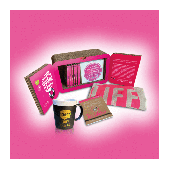 doppia anta e chiusura magnetica. Contiene tutti i 10 SalvagenThè (classic) assieme al TÈccuino, la ToTè Bag Life e la NarraTAZZA.