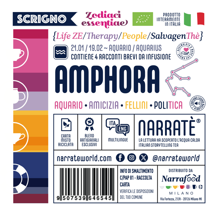 Box dedicata alle caratteristiche del segno zodiacale dell’Aquario. Contiene quattro titoli, selezionati tra tutte le nostre linee editoriali, per descriverne le peculiarità: Aquario (Life ZE), Amicizia (Therapy), Fellini (People), Politica (SalvagenThè). Comprende anche 1 TÈccuino fucsia.