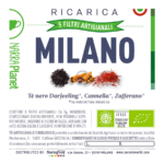 La confezione in cartoncino biodegradabile, contiene 5 filtri monodose del blend MILANO. Ogni filtro è ARTIGIANALE, BIOLOGICO e MADE IN ITALY, ciascuno con 2g di tè di alta qualità taglio tisana. Non è provvisto né di filo né di pendulino in carta per non aggiungere altri elementi potenzialmente inquinanti sia nell’infuso che nella filiera di produzione. La piccola azienda agricola piemontese con la quale formuliamo gli aromi per ogni titolo, li confeziona assieme ai tè, applica le più rigorose politiche di rispetto e tutela sia ambientali che lavorative. La certificazione biologica è invece affidata a ICEA.