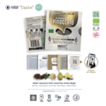 Un infuso da favola a base di Rooibos, impropriamente noto come “Tè rosso”, ché trattandosi di un racconto per bambini, a differenza del tè, non contiene teina ed è leggermente più dolce. “Pinocchio” nell’antico dialetto toscano significava pinolo, da qui l’inserimento dei Pinoli. A seguire non poteva mancare la Pera, citazione sensoriale delle “tre pere” unico cibo disponibile nelle ristrettezze economiche della cucina di Geppetto. Infine abbiamo demandato al sentore di Vaniglia l’evocazione della Fata Turchina.