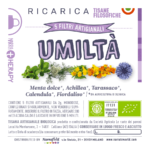 La confezione in cartoncino biodegradabile, contiene 5 filtri monodose della tisana UMILTÀ. Ogni filtro è ARTIGIANALE, BIOLOGICO e MADE IN ITALY, ciascuno con 2g di miscela di alta qualità taglio tisana. Non è provvisto né di filo né di pendulino in carta per non aggiungere altri elementi potenzialmente inquinanti sia nell’infuso che nella filiera di produzione. La piccola azienda agricola piemontese che coltiva, produce, formula e confeziona le tisane utilizzate, applica le più rigorose politiche di rispetto e tutela sia ambientali che lavorative. La certificazione biologica è invece affidata a ICEA.